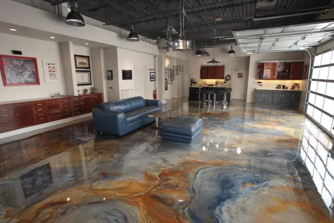 By combining metallic epoxy’s striking visuals with the practicality of flake systems’ durability features, you can achieve a floor that’s as functional as it is beautiful—perfect for residential garages or commercial environments alike.